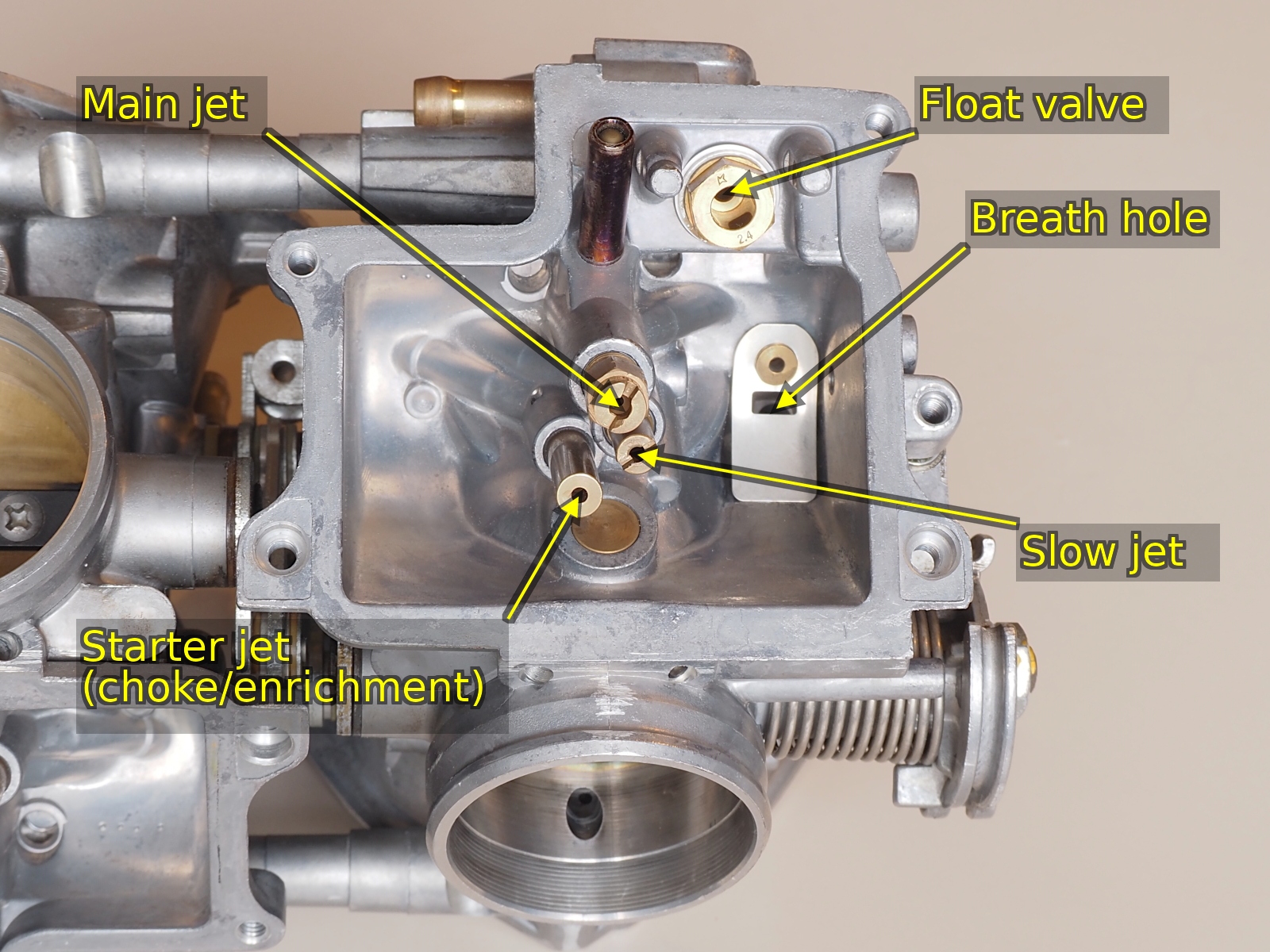 - Primary pilot outlet port. This is the main idle fuel outlet, controlled by slow jet and pilot screw.