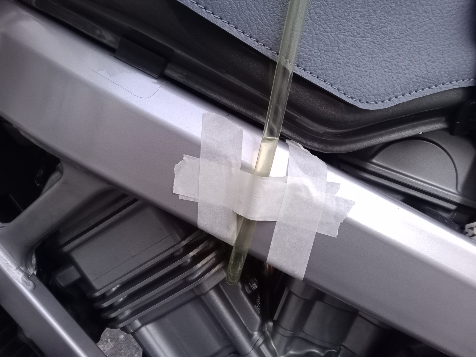To confirm that the fuel level was the problem, I connected two clear rubber hoses to the carburetor drains. The hoses were then bent upward, above the fuel cap. By loosening the drain screws of the carburetors, you can see the fuel level in the hose, which will be equal to the level in the float chamber. After a few kilometers of driving, I confirmed that the level in one of the two carburetors had risen several centimeters and was now reaching the breather pipe.