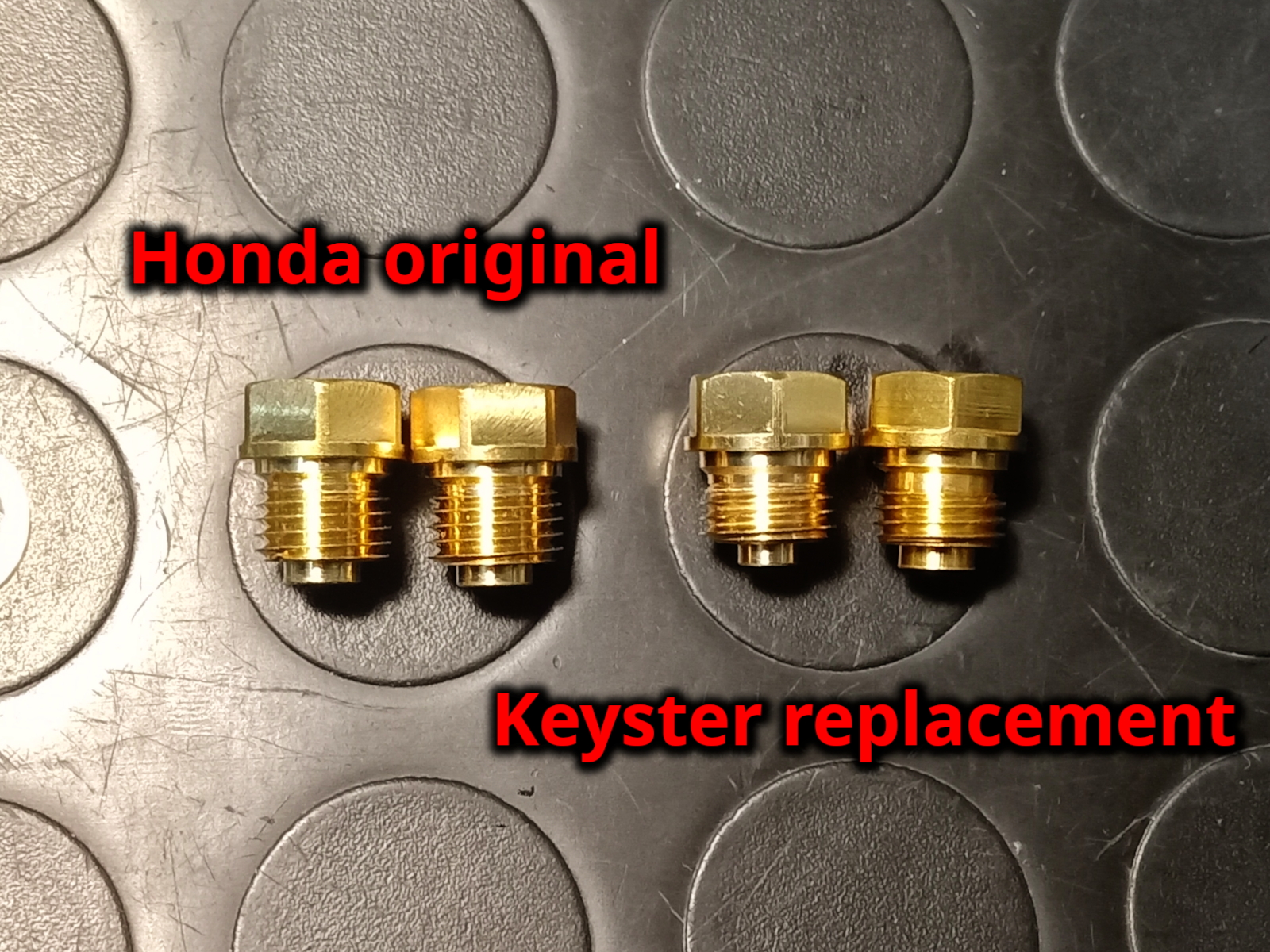 The Keyster replacement for the pilot screw is identical for the inside part. The external part is short and is intended to be closed with a cap, as is mandatory in some countries due to environmental pollution regulations.